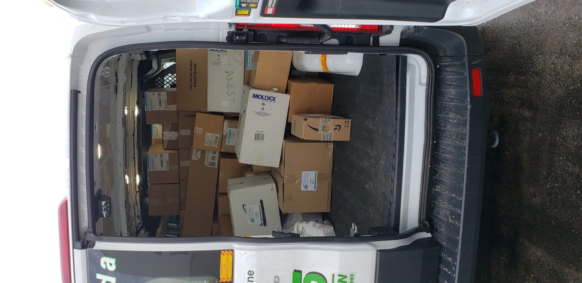 同时,联盟的徐医生租了一辆卡车,抓了自己儿子做壮丁,从纽约出发,驱车6 个小时赶往缅因提取我们目前为止最大量的一批现货:一万多只符合Noish 标准的N95医用口罩。随着货源越来越近,联盟董事会必须对于运输渠道做出选择。鉴于小批量个人赠品经Fedex/USPS有在封城后到达武汉的先例,我们起初决定这第一批至关重要的物资化整为零,避开大批物资的清关手续,直接快递到一线医护人员手中。虽然运费高昂,但是金钱就是时间,时间就是生命。