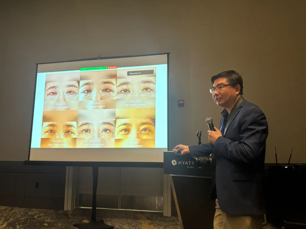 讲座最后的重磅压轴讲员叶忠医生为我们showcase了眼皮和面部美容手术。叶医生于浙江医科大学毕业后,先从事骨外科工作四年,又先后在上海医科大学中山医院手外科和显微外科,以及Mayo Clinic 手外科和显微外科, 威斯康星大学医学院整形科和东弗吉尼亚大学医学院整形科进修,练就了精湛的整形外科技术。他通过美国医生执照考试后,在Advanced Dermatology and Laser Center完成皮肤科培训,于1997年开始执业,多年来积累了丰富的面部整形手术的临床经验,并创建了Chicago Anti-aging Institute. 叶医生精湛的医术和对北美华医医美届的巨大贡献是大家有目共睹的。这次的讲座更让大家看到了通过微创整形手术可以完美的解决外用药物注射治疗和激光射频等都解决不了的问题。叶医生的讲座使整个医美专场达到高峰,为这次医美讲座画上了一个圆满的句号。